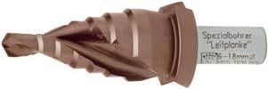 Modèle : foret étagé avec affûtage en croix et goujure hélicoïdale variable. La queue à 3 méplats empêche le foret de tourner dans le mandrin. Le cône spécial dans la zone cylindrique empêche le foret de se bloquer pendant le perçage.