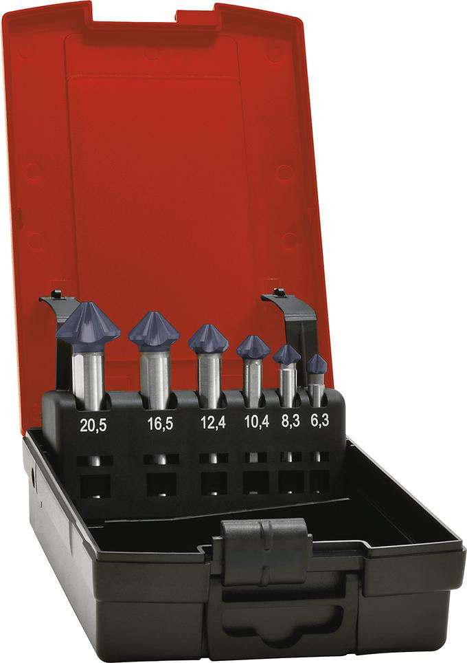 Jeu de fraises coniques DIN335C 90° 6,3-20,5mm TiAlN 3-4 dents à pas variable queue 3 méplats