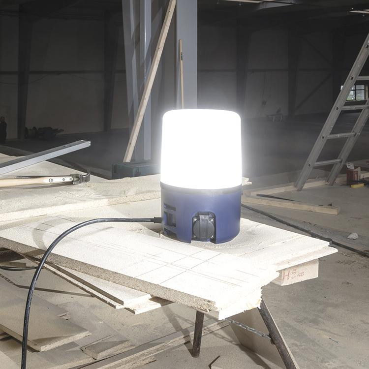 Modèle : dans un boîtier en plastique antichoc, résiste à une chute de jusqu'à 1 mètre de haut. Sangle en nylon avec crochet pour suspendre ou à poser directement sur l'établi. Prise intégrée pour brancher d'autres outils. Avec un angle de diffusion de 360° pour un éclairage large et sans éblouissement. Température de travail –10 °C à +30 °C.
