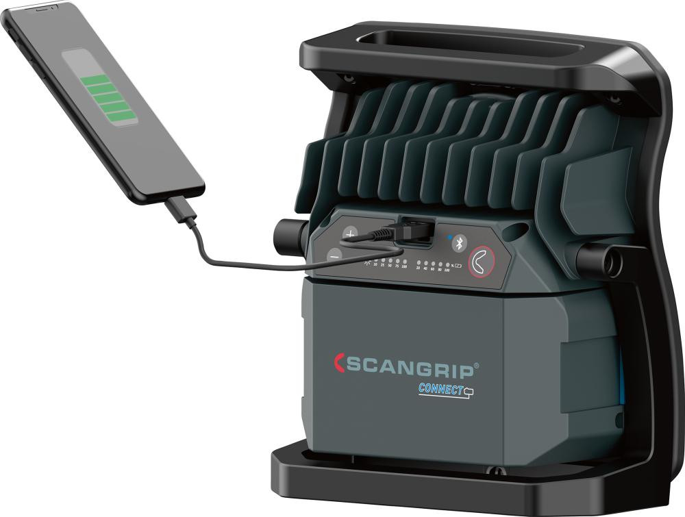 Avec la commande d'éclairage Bluetooth®, vous commandez jusqu'à 4 projecteurs et réglez l'intensité lumineuse sur 5 modes. Vous pouvez adapter vos lampes à l'environnement de travail avec votre smartphone. La batterie de réserve intégrée empêche que la lumière ne s'éteigne soudainement.
