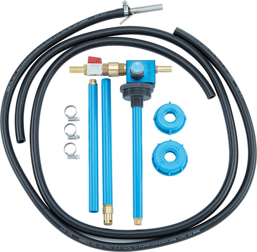 Modèle : ces liquides peuvent être mélangés à une concentration optimale grâce à la valve de retenue. Le mélangeur dispose d'une entrée d'eau et d'une entrée de concentré. Pour des raisons de sécurité, un clapet anti-retour se trouve du côté de l'entrée d'eau afin d'éviter tout effet d'aspiration dans le système d'eau potable. Livré avec kit de vissage pour couvercle de fût.