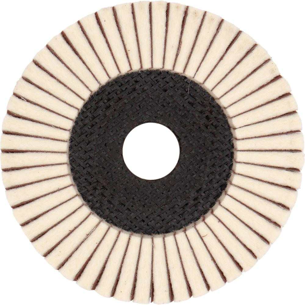 Modèle : 100 % de feutre naturel sur un disque en fibre de verre. Grâce aux lamelles, le disque s'adapte idéalement au contour de la pièce à usiner et libère la pâte à polir de manière uniforme. Cela réduit la charge thermique.