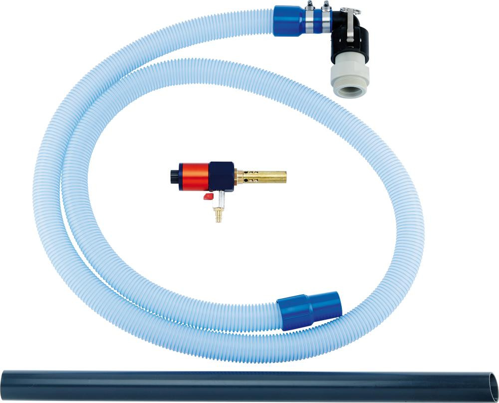 Modèle : pompe d'aspiration et de refoulement pour le remplissage ou la vidange de réservoirs de lubrifiants et de liquides de refroidissement. Elle est vissée à la bonde du fût et raccordée à l'air comprimé. Une vanne de fermeture manuelle sert de contrôle d'entrée ou de sortie et empêche ainsi tout débordement. Livré avec tube ascendant, raccord fileté pour fût 2 pouces, fermeture rapide, tuyau d’alimentation de 3 m et tube d'aspiration.